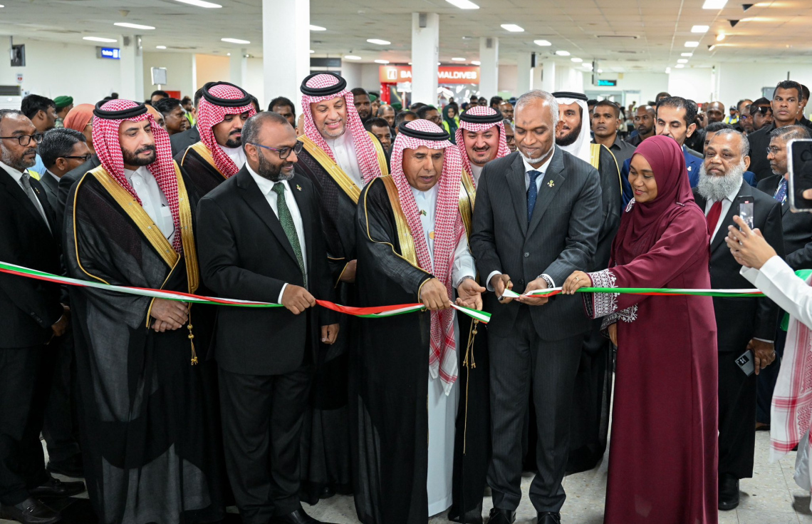 Prior to the inauguration ceremony, President Dr Mohamed Muizzu and First Lady Madam Sajidha Mohamed met with Maldivian pilgrims embarking on the first journey under the Makkah Route Initiative. They also observed the facilitation procedures conducted at Velana International Airport as part of this new initiative.